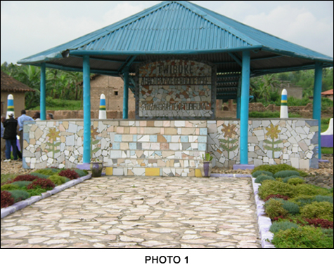 The Rwanda project has been a successful collaboration between several NGOs with different talents. The story begins with a woman named Lily Yeh, of Barefoot Artists, and her desire to aid the genocide survivor's village of Rugerero with the proper burial of their families and friends. She and the community built the memorial structure (Photo 1) in 2004 which has been used since then as a location for remembering loved ones who were lost in the genocide. Lily recognized that the community had other needs as well and brought in JeffHealth and Engineers Without Borders Mid-Atlantic Professionals (EWB-MAP). JeffHealth established a community health committee and taught hygiene, collected community data, and provided supplements for the most malnourished children. Barefoot Artists and JeffHealth worked to establish co-ops and encourage animal husbandry. (Photo 2). EWB-MAP was asked to work on a sanitation project in the community. Some of the homes did not have functioning latrines. (Photo 3) These were replaced by a local mason over the course of 2 years. (Photo 4). A maintenance committee was established and taught what features of the latrines were most important over the next 3 years and now the community is independently maintaining their structures.